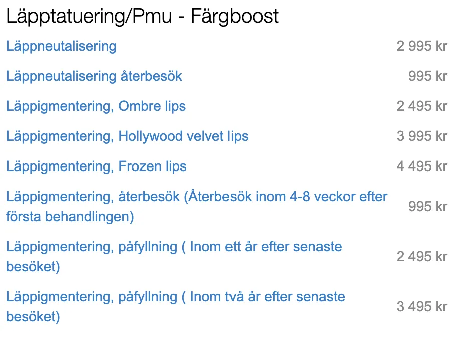 20% rabatt gäller på alla Permanent Makeup behandlingar för läppar. Du kan välja fritt!